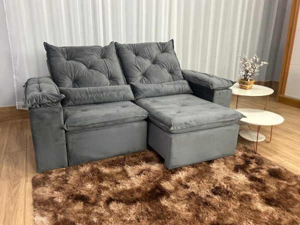 Sofá Retrátil Reclinável New Grécia 1.90m – Cinza Veludo
