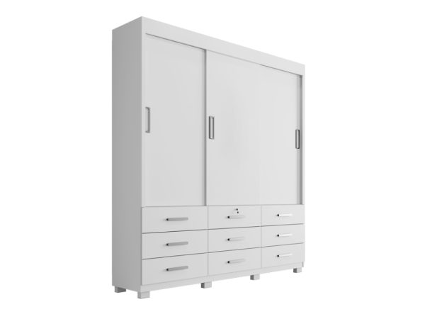 Guarda-Roupa Itapema II 3 portas de correr Sem espelho 9 gavetas – Branco
