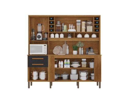 Armário Kit de Cozinha Catar 6 Portas 2 Gavetas – Cinamomo/Preto