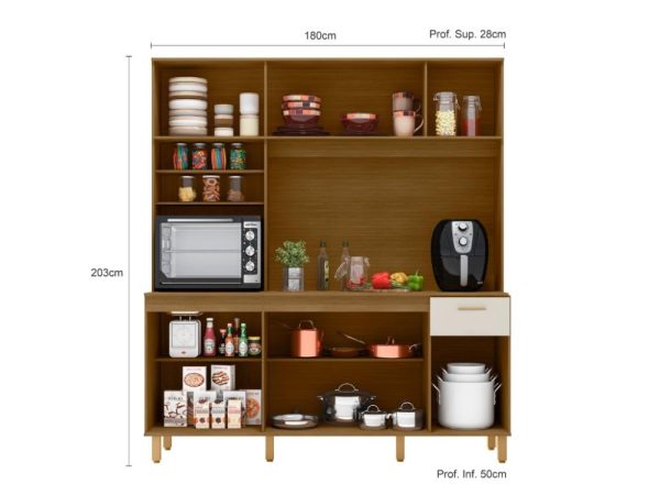 Armário Kit de Cozinha Núria 9 Portas 1 Gaveta – Freijo Ripado/Off white Acetinado
