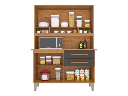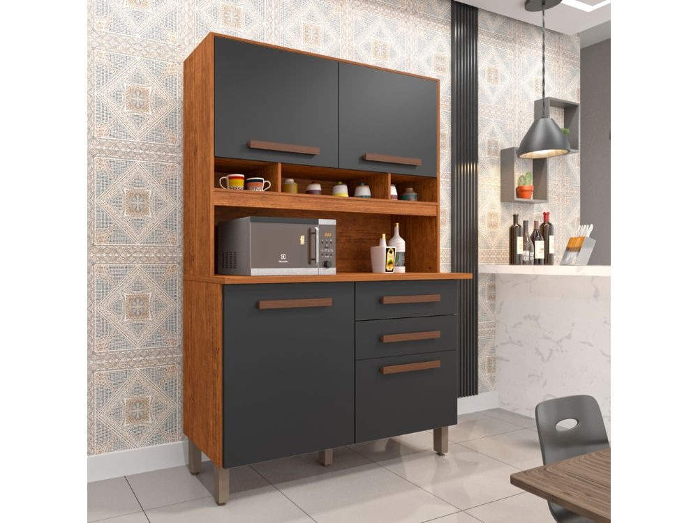 Armário Kit de Cozinha Sofia 4 Portas 2 Gavetas – Cinamomo/Grafite