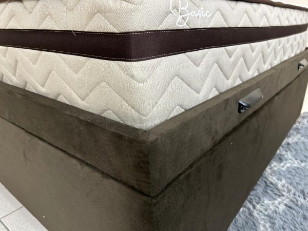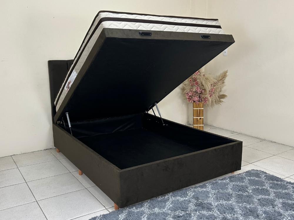 Combo Base Baú Rio Casal Marrom + Colchão Basic Molas Ensacadas Casal