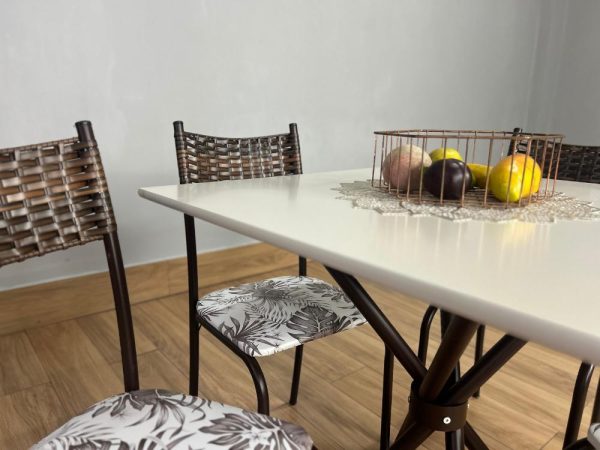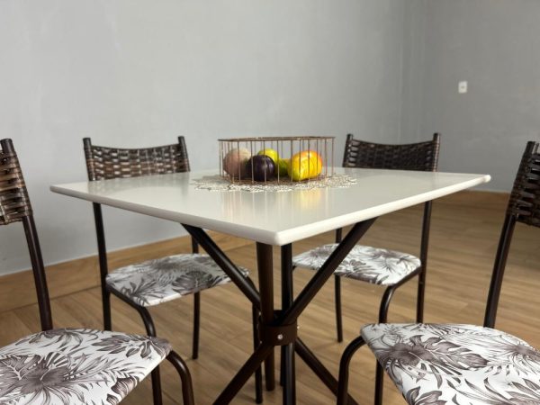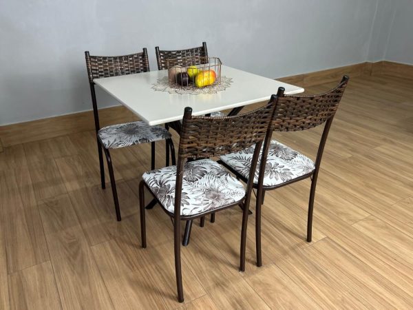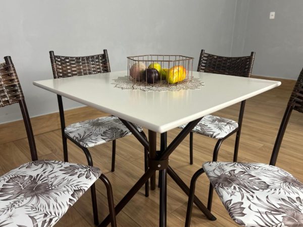 Seja o primeiro a avaliar “Conjunto Mesa Tubular Macaé Tampo Quadrado Com 4 Cadeiras Ratam – Marrom/Off White”