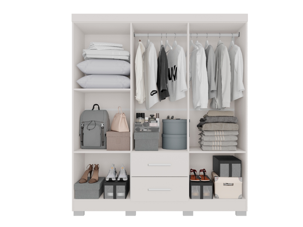 Este Roupeiro vai lhe proporcionar um amplo e bem dividido espaço interno para que você possa acomodar e organizar os mais diversos itens. Com estrutura em MDP e revestimento em pintura UV, este Roupeiro dispõe de muita estabilidade e resistência. O Guarda-Roupa Estrela possui um visual sofisticado e elegante, possível de combinar com inúmeras decorações. O Roupeiro Estrela é a escolha para sua casa!