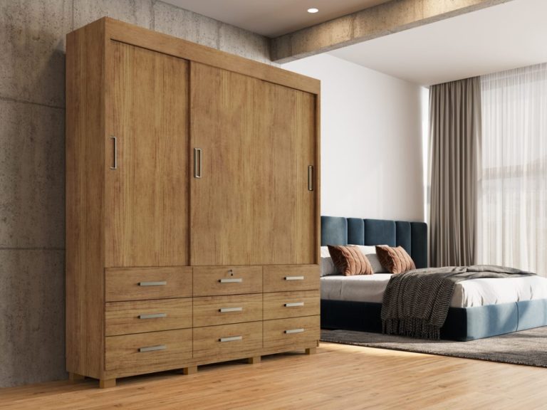 Guarda-Roupa Itapema II 3 portas de correr Sem espelho 9 gavetas – Cedro/areia FLEX
