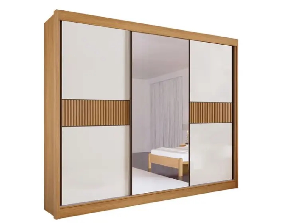 Guarda-Roupa Los Angeles 3 portas e 6 gavetas – Cinamomo/Off White Flex