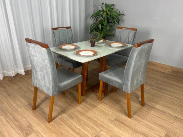Mesa de Jantar Bali 1.20×0.80 Com 4 Cadeiras Isa – Minas Plac /Ouro Decor