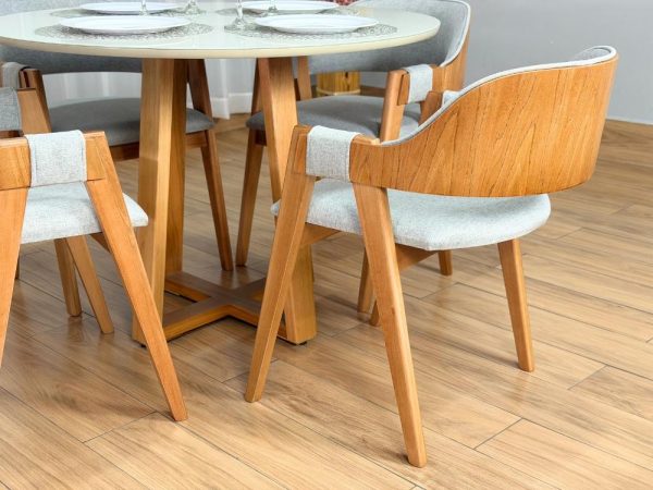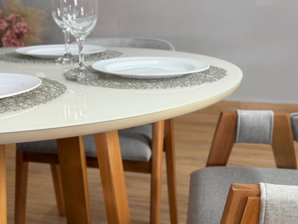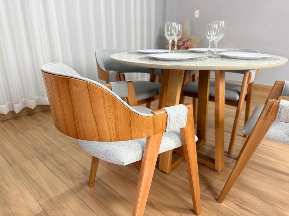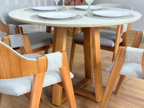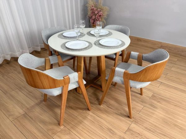 Mesa de Jantar Bali 1.10×1.10 Circular c/4 Cadeiras Pérola – Minas Plac /WJ Decor