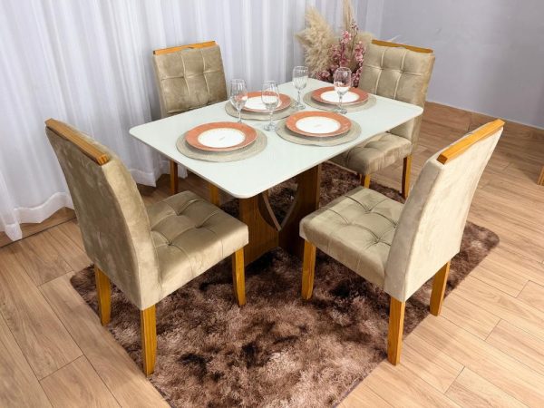 Mesa de Jantar Madri 1.20×0.80 Com 4 Cadeiras Londres – Minas Plac