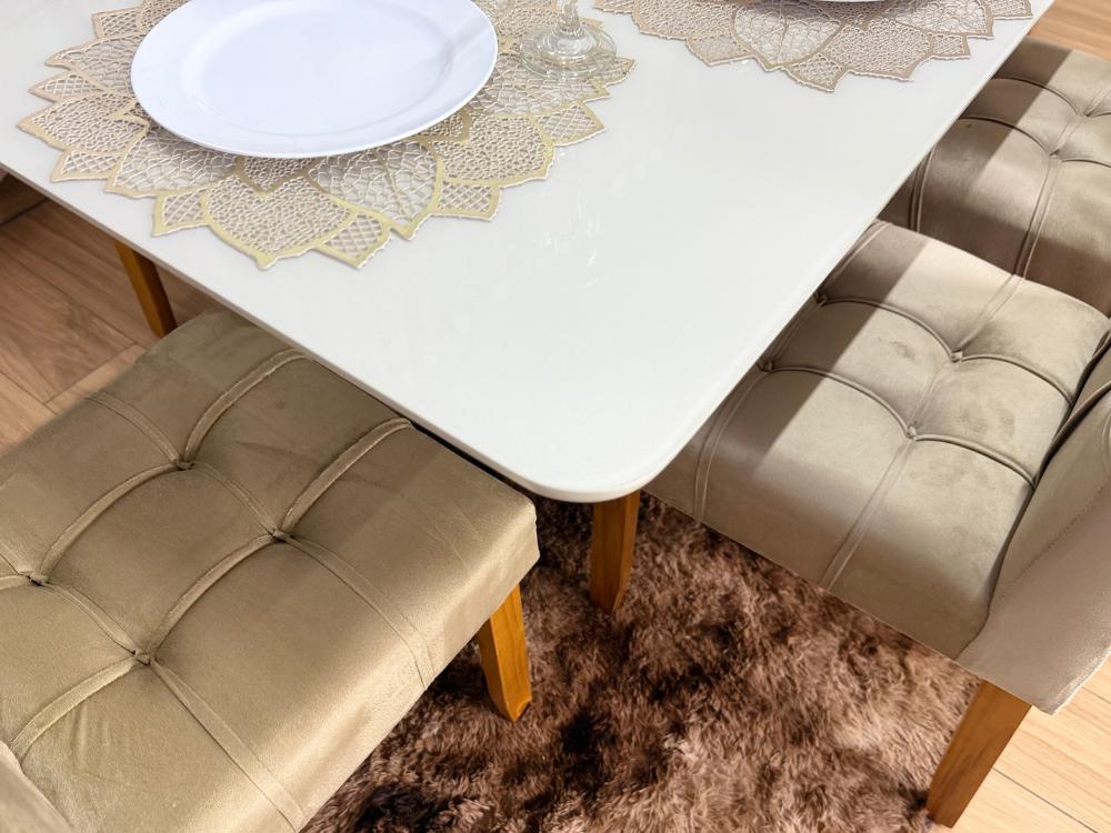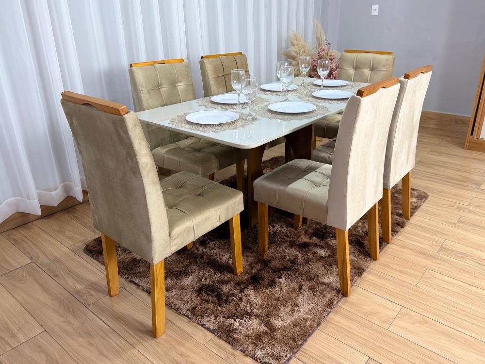Mesa de Jantar Madri 1.60×0.80 Com 6 Cadeiras Londres – Cinamomo/Off white/Avelã