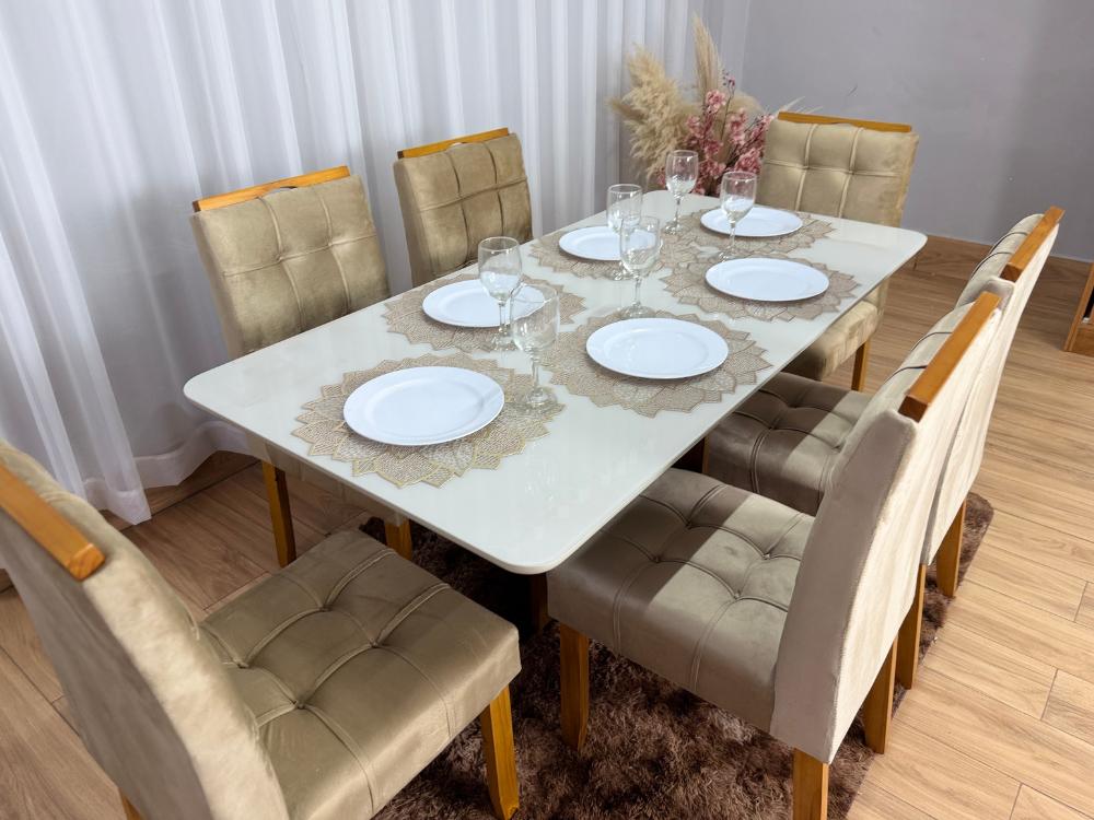Seja o primeiro a avaliar “Mesa de Jantar Madri 1.60×0.80 Com 6 Cadeiras Londres – Cinamomo/Off white/Avelã”
