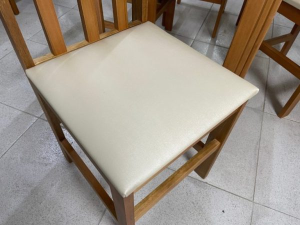 Cadeiras em madeira maciça, tecido courino bege
