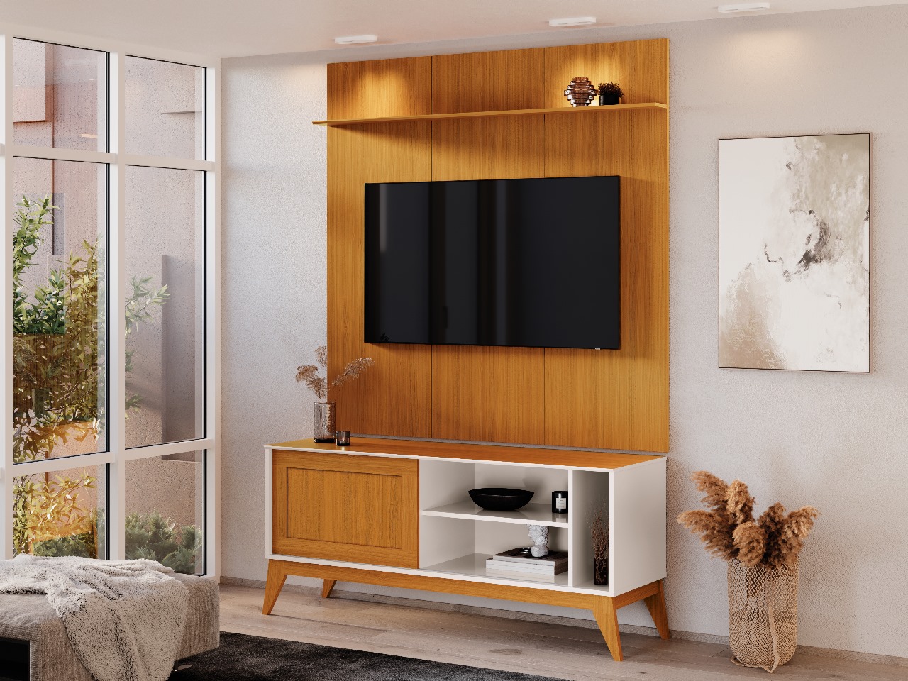 Rack Aruba com Painel Avant 55″ – Off White/Cedro