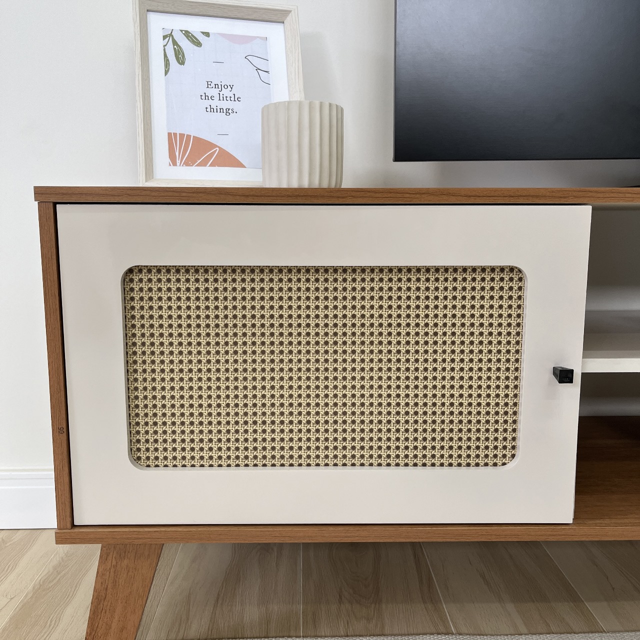 O Rack Charlotte é a escolha perfeita para quem busca um móvel elegante, aconchegante e cheio de espaço. A palhinha presente nas portas, combinada com as cores encantadoras, irão remeter ao seu ambiente a sensação de conforto e afetividade. Com muito espaço entre os nichos e portinhas, esse rack é perfeito para guardar livros, revistas, objetos de decoração e muito mais. Com design elegante e leve, ele transformará seu ambiente e será a peça-chave na decoração da sua sala de estar.