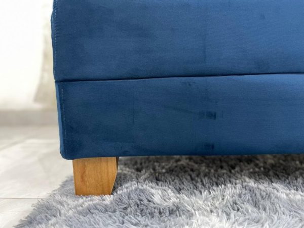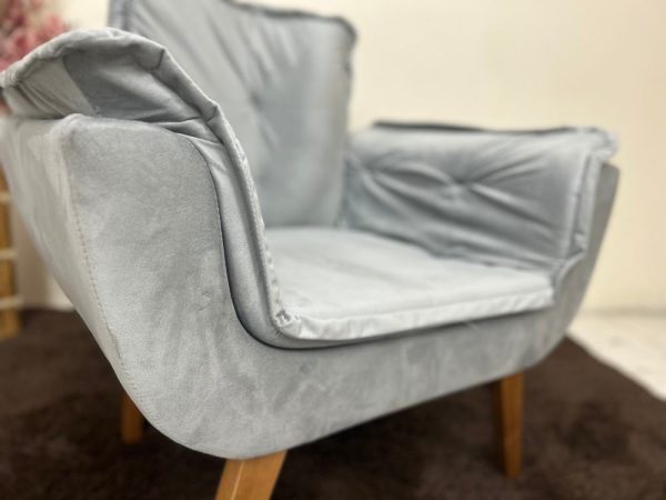 Encosto fixo e arredondado com almofadas soltas e preenchidas de fibras de silicone.