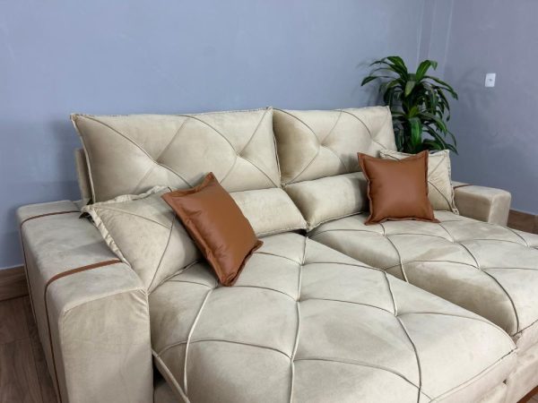 Sofá Retrátil e Reclinável Gran Bello 2.50m – Bege Veludo