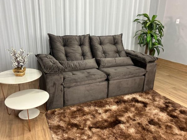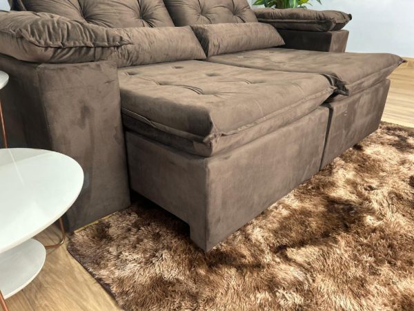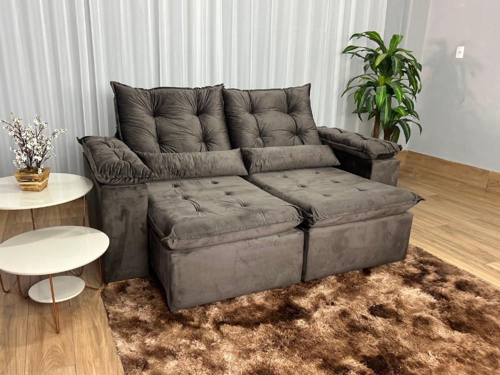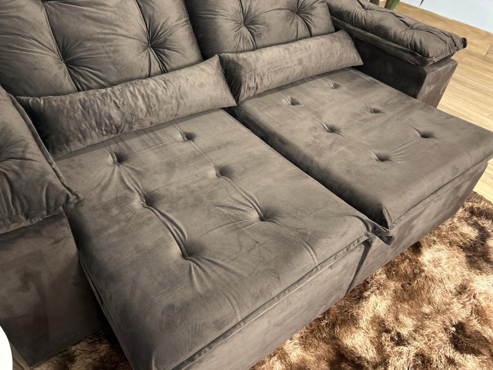 Sofá Retrátil Reclinável Atenas 2.00m – Marrom Veludo
