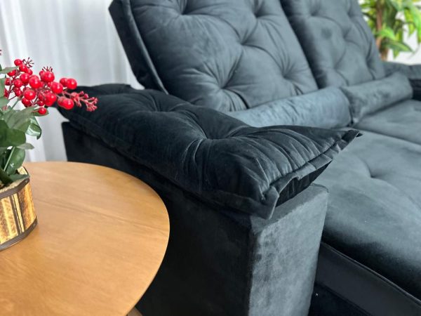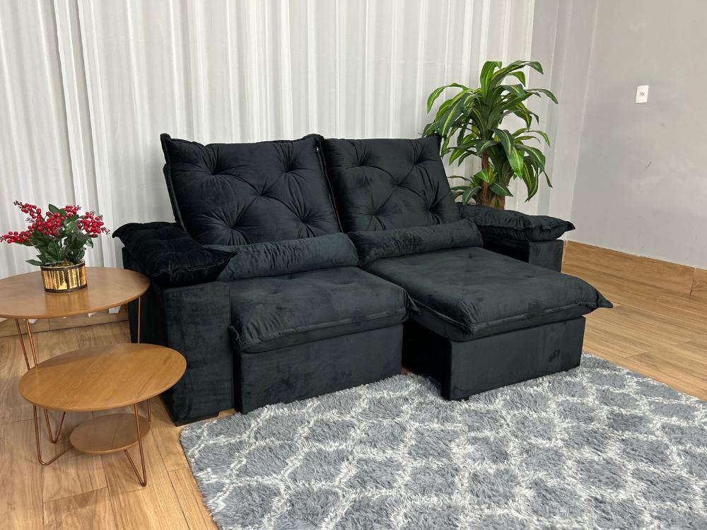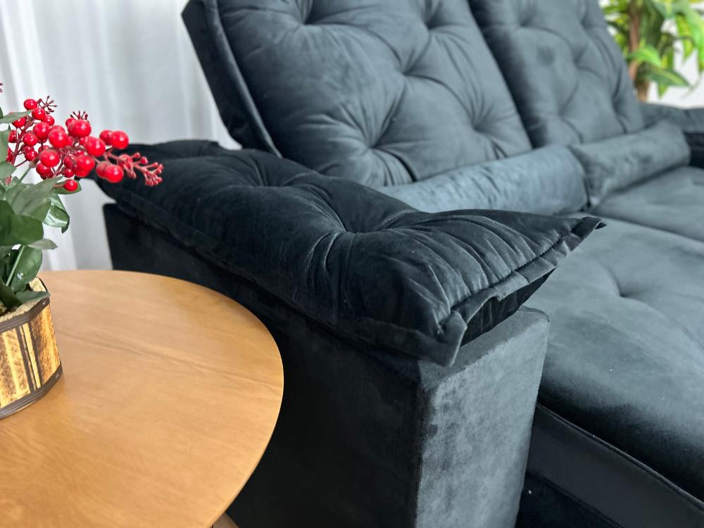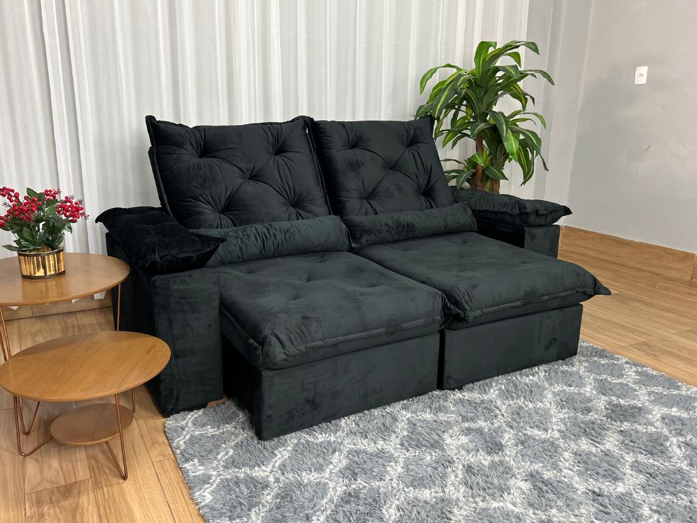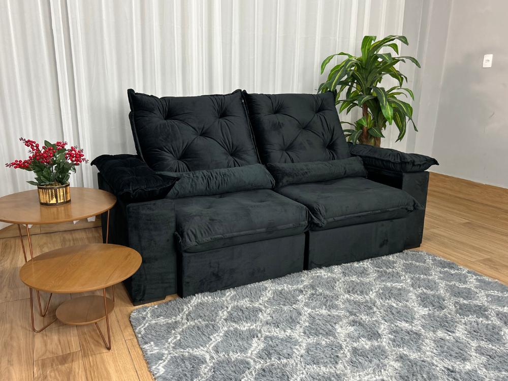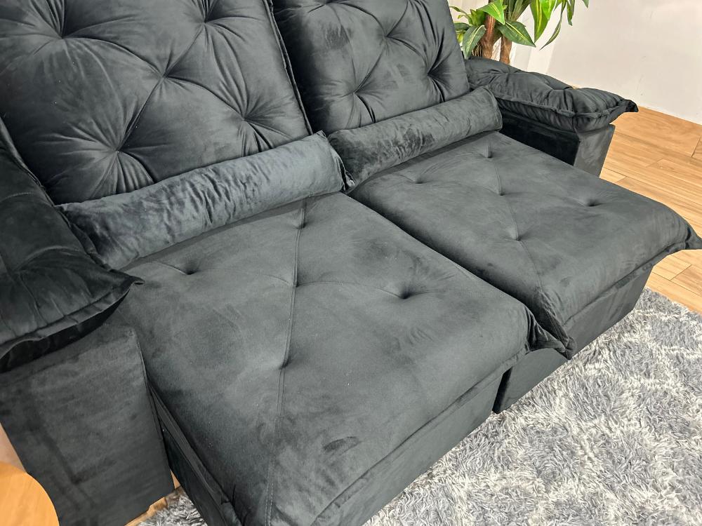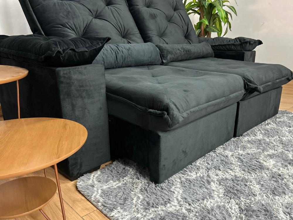 Sofá Retrátil Reclinável Porto Madero 2.00m- Preto Veludo