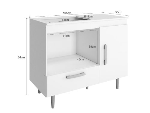 Balcão Alecrim Para Cooktop 4 Bocas 1 porta 1 gaveta – branco