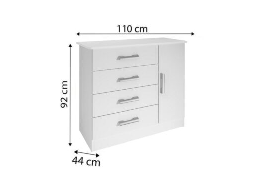 Cômoda Sapateira Chicago 4 Gavetas 1 Porta Tcil – Branco