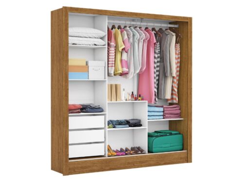 Guarda-Roupa Panamá 3 portas de correr – Cinamomo/Off White Flex