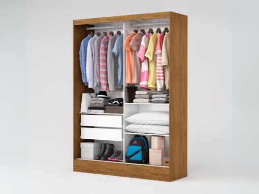 Guarda-Roupa Santiago c/ espelho 2 Portas e 2 Gavetas – Cinamomo/Off White