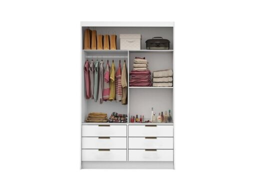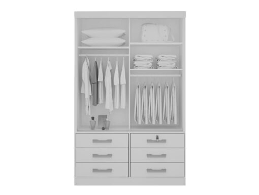 Guarda-Roupa Buzios 2 portas de correr com espelho 6 gavetas – Branco