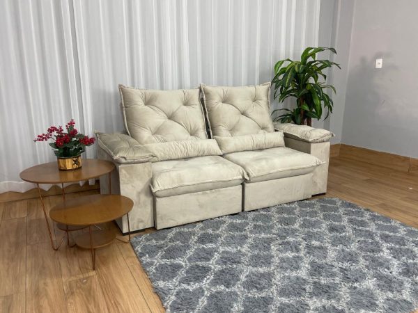 Sofá Retrátil Reclinável Atenas 2.00m – Bege Veludo