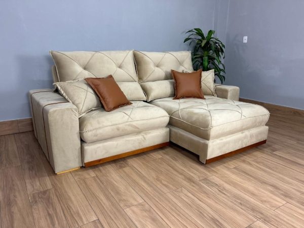 Sofá Retrátil e Reclinável Gran Bello 2.00m – Bege Veludo