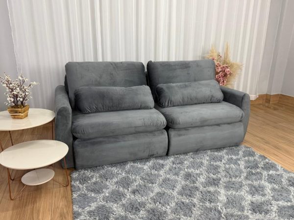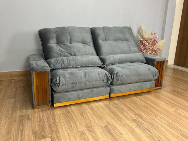 Sofá Cama Retrátil Reclinável Amaranto 2.30m Mod.100 – Cinza Veludo