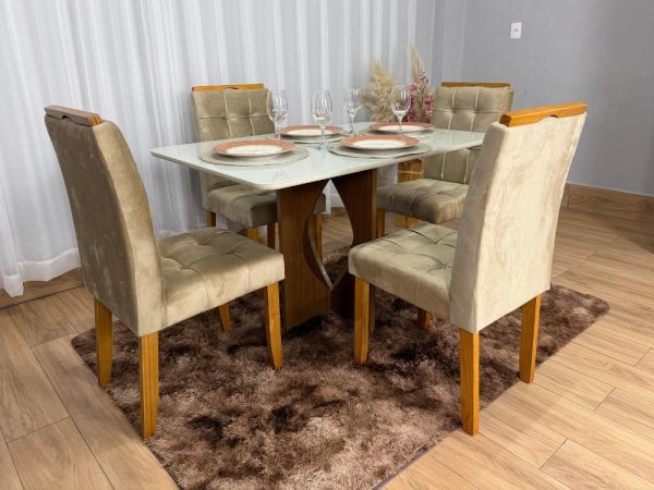 Mesa de Jantar Palace 1.10×0.75 Com 4 Cadeiras Brisa Veludo – Mel/Blonde Pastel