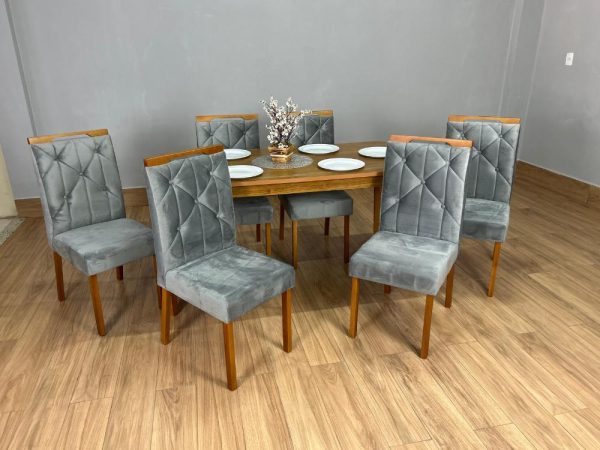 Mesa de Jantar Alegra 1.60×0.80 Com 6 Cadeiras Jasmim – Cinamomo/Cinza